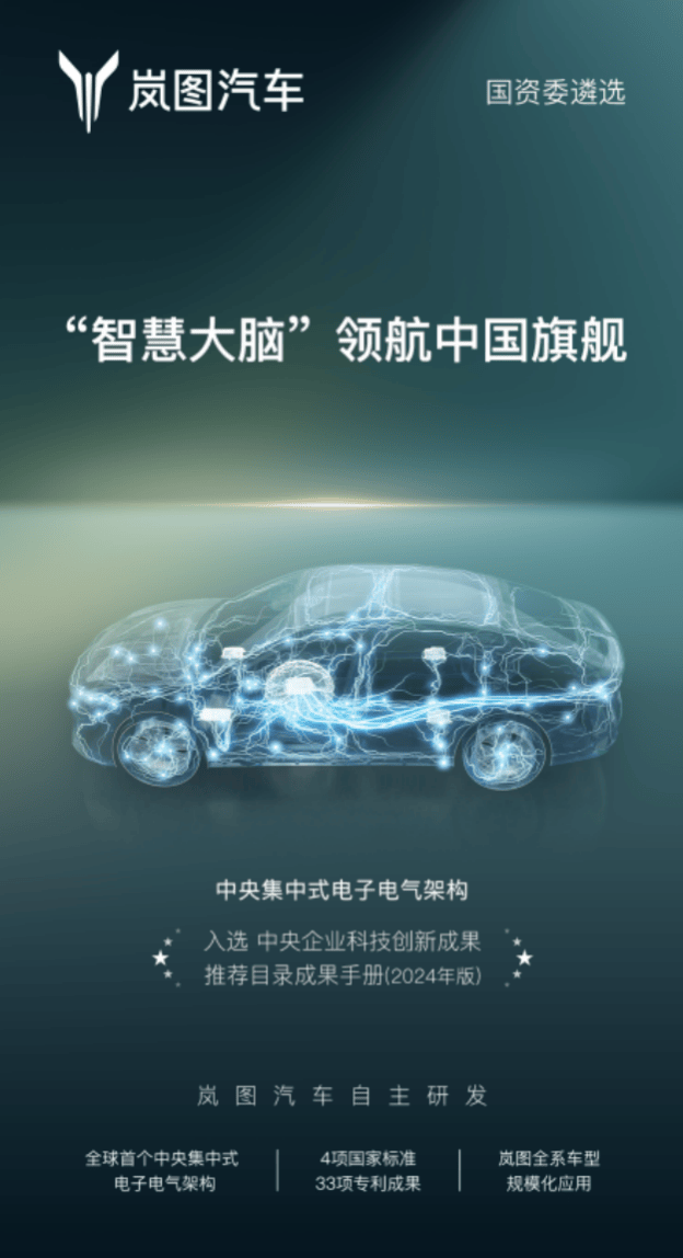 近日,国务院国资委发布《中央企业科技创新成果推荐目录成果手册(2024年版)》,其中岚图汽车自主研发的中央集中式电子电气架构平台成功入选,成为国家层面重点推荐的前沿科技创新成果之一,标志着岚图在智能电动汽车电子电气架构领域的技术实力和领先地位获得国家级权威认可,并给予推荐。